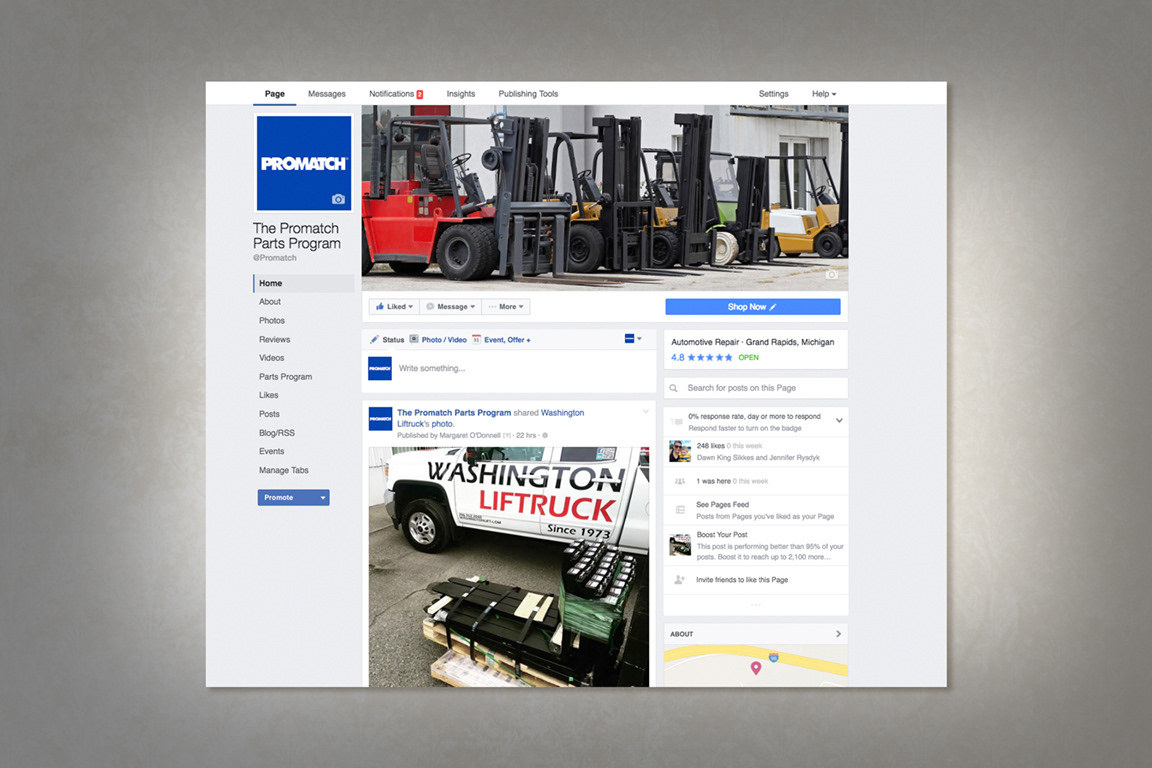 Manage the Promatch Part Program Facebook page design and content